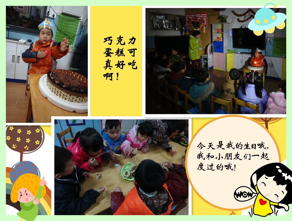 今天还是张明泽小朋友的生日呢,我们为他唱了生日歌哦,还一起吃了大蛋糕呢,巧克力蛋糕真好吃啊!