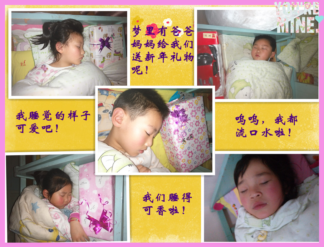 好困啊,我们要进入梦乡了,梦到爸爸妈妈送我们新年礼物了,会是什么呢?