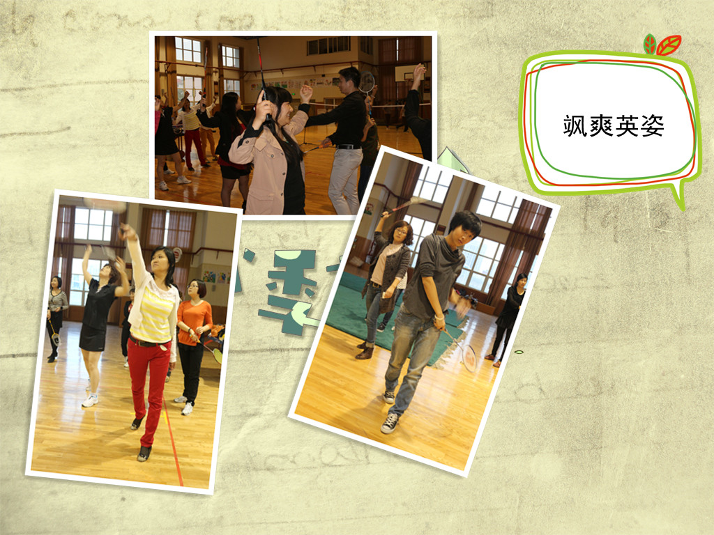 我们的风采 运动社团的目的就是为了促进我们老师的身体锻炼,并且保持愉快的身心投入到繁忙的工作当中去!下面请看一看我们接下来活动中的教师风采,是不是你也会心动呢? 我们社团中的羽毛球高手,李敏李老师!动作标准而且速度敏捷! 我们运动社团的主打队员,认真而又努力的练习,相信一定会取得好成绩的! |