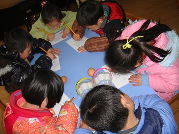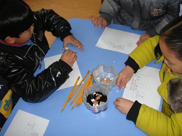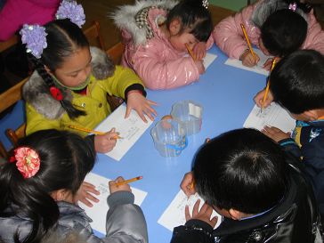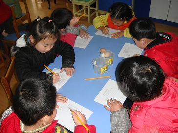 老师说一会要把蛋壳分别放进水中和醋中, 让我来猜猜会发生什么?把我的想法想画下来!