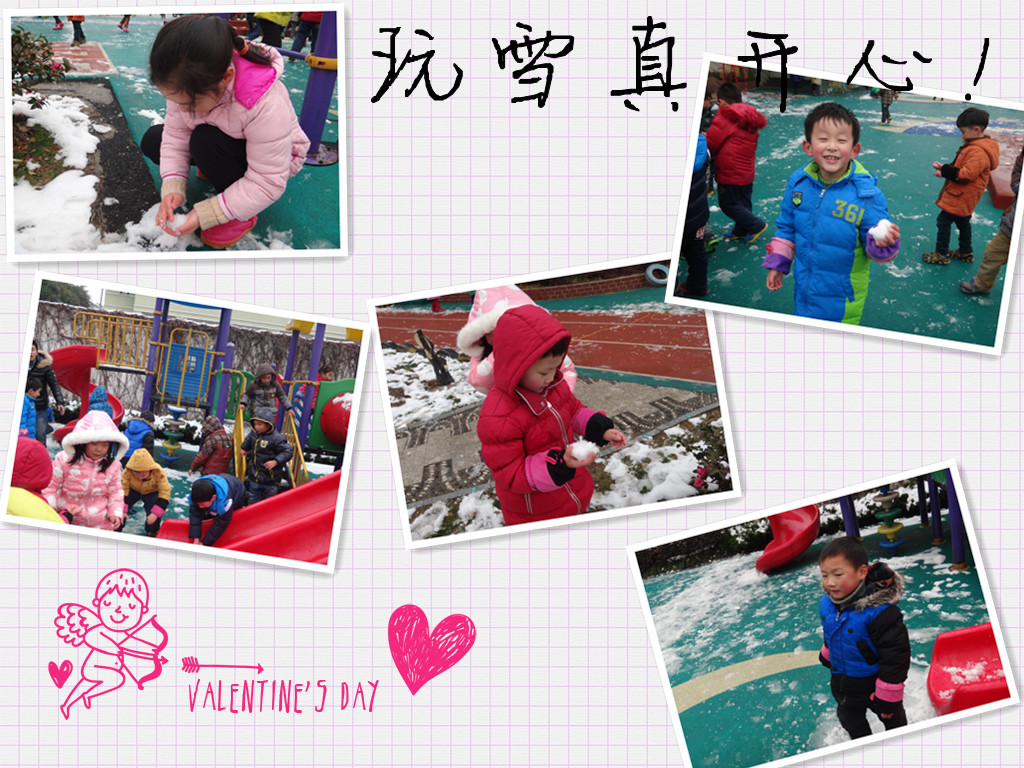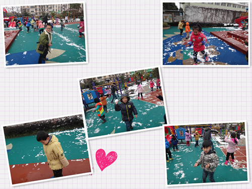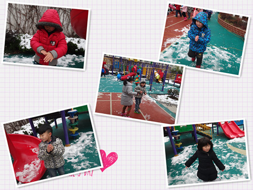 雪中取乐 2014年新学期开学了,可是天气公公却下起了大雪,这给我们来幼儿园上学带来了很多的麻烦。可是到了幼儿园我们却发现我们幼儿园的雪还是好好的,下雪天小朋友最想干嘛?对的,应大家的要求老师带我们到户外来玩雪,当然我们那可是准备充分的啊,防滑防湿的鞋子是必须的,接下来就不说闲话了看看我们玩的多开心吧! 虽然刚出来时候身体很冷,可是运动过之后我们的身体特别的暖和,真想下次还来玩雪! |
