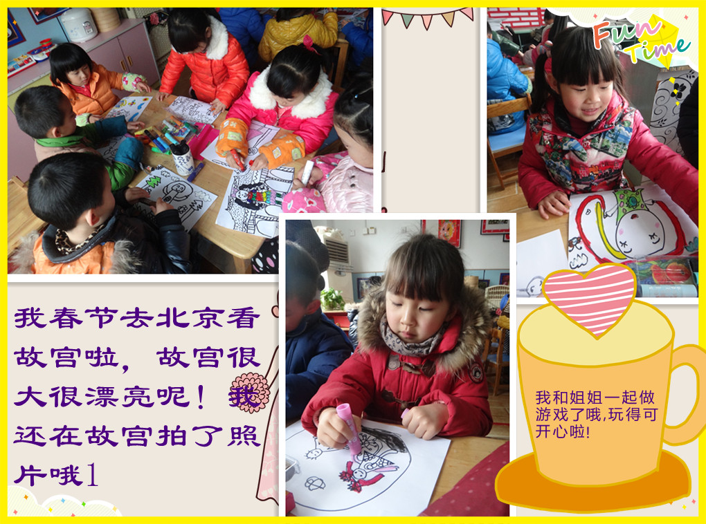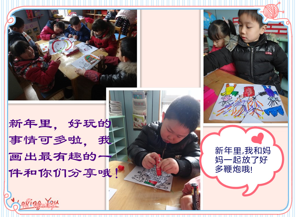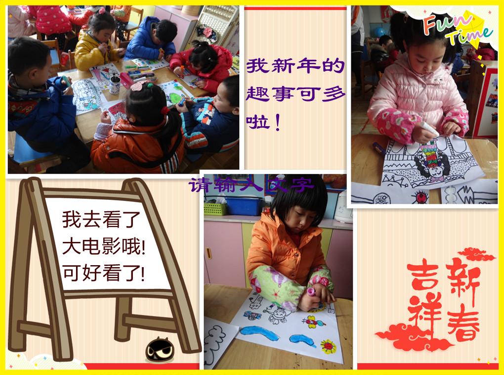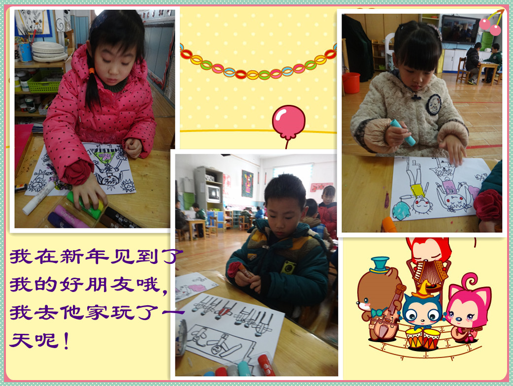 新年里,我们玩了好多好多的游戏,我们一起和伙伴们分享了快乐的事情,还画出来了哦!