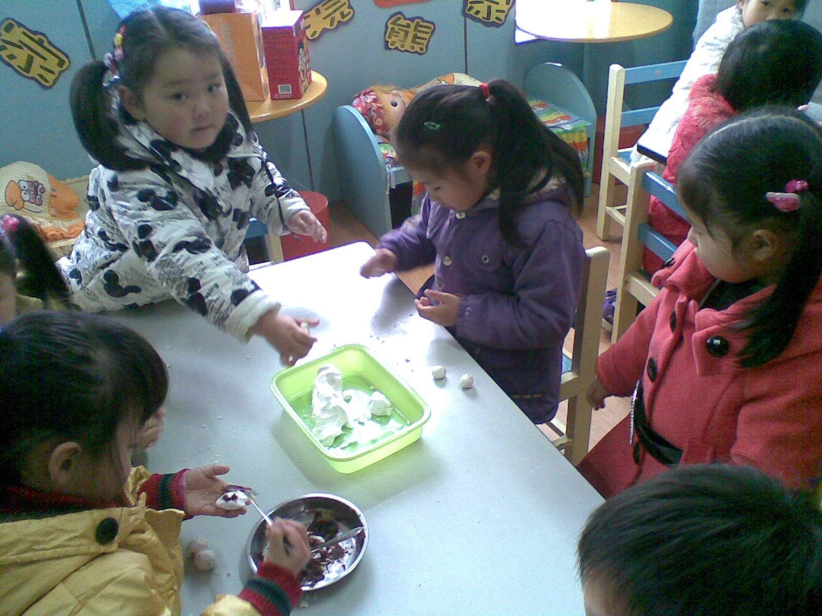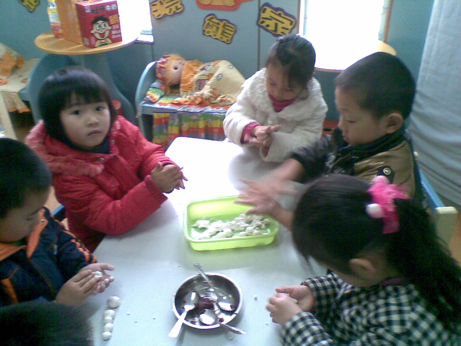 元宵节到了,我们正在自己动手制作元宵呢!以前都是爸爸妈妈、爷爷奶奶做元宵给我们吃,今天我们制作元宵做我们下午的点心,我们觉得真开心!