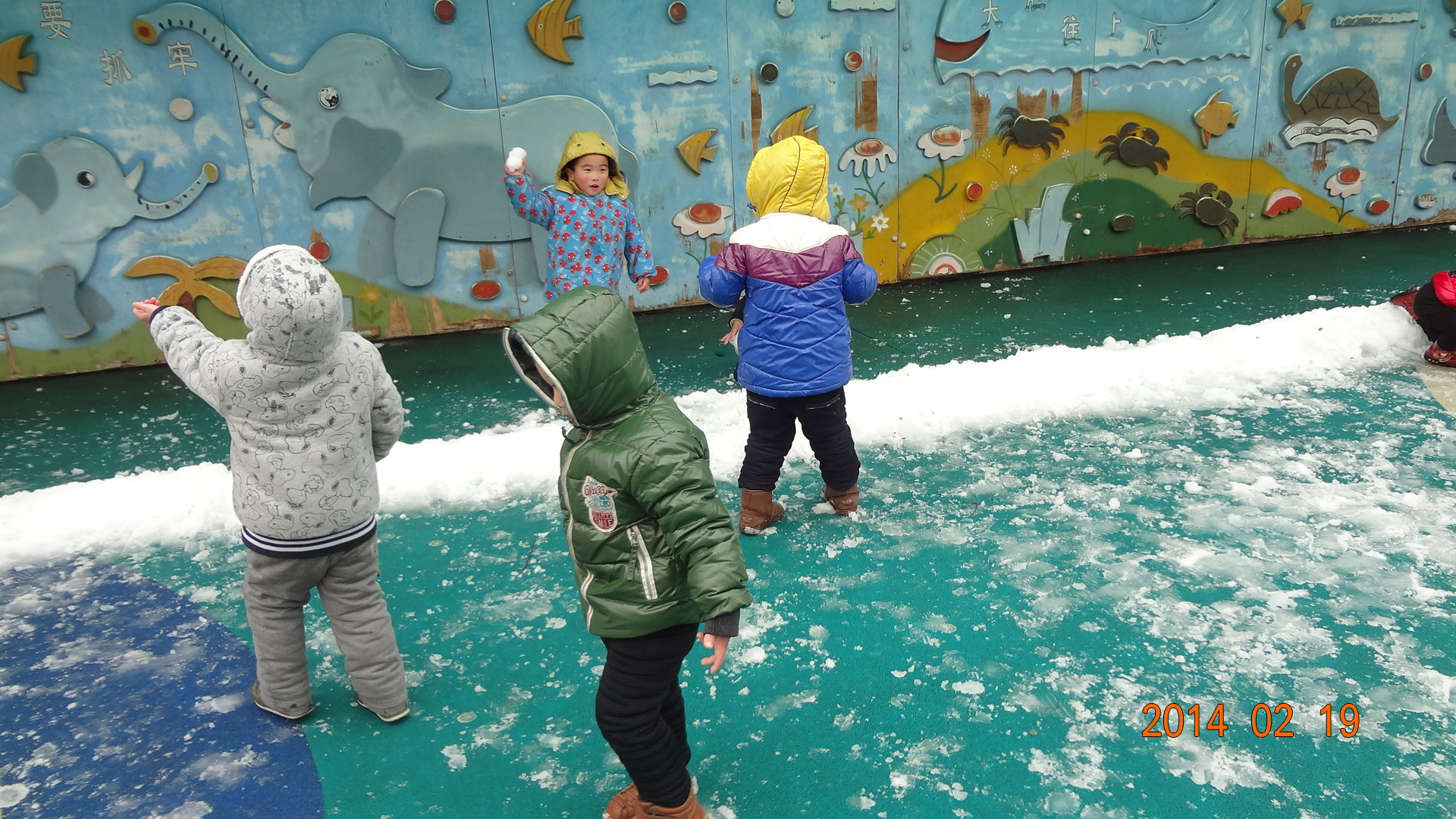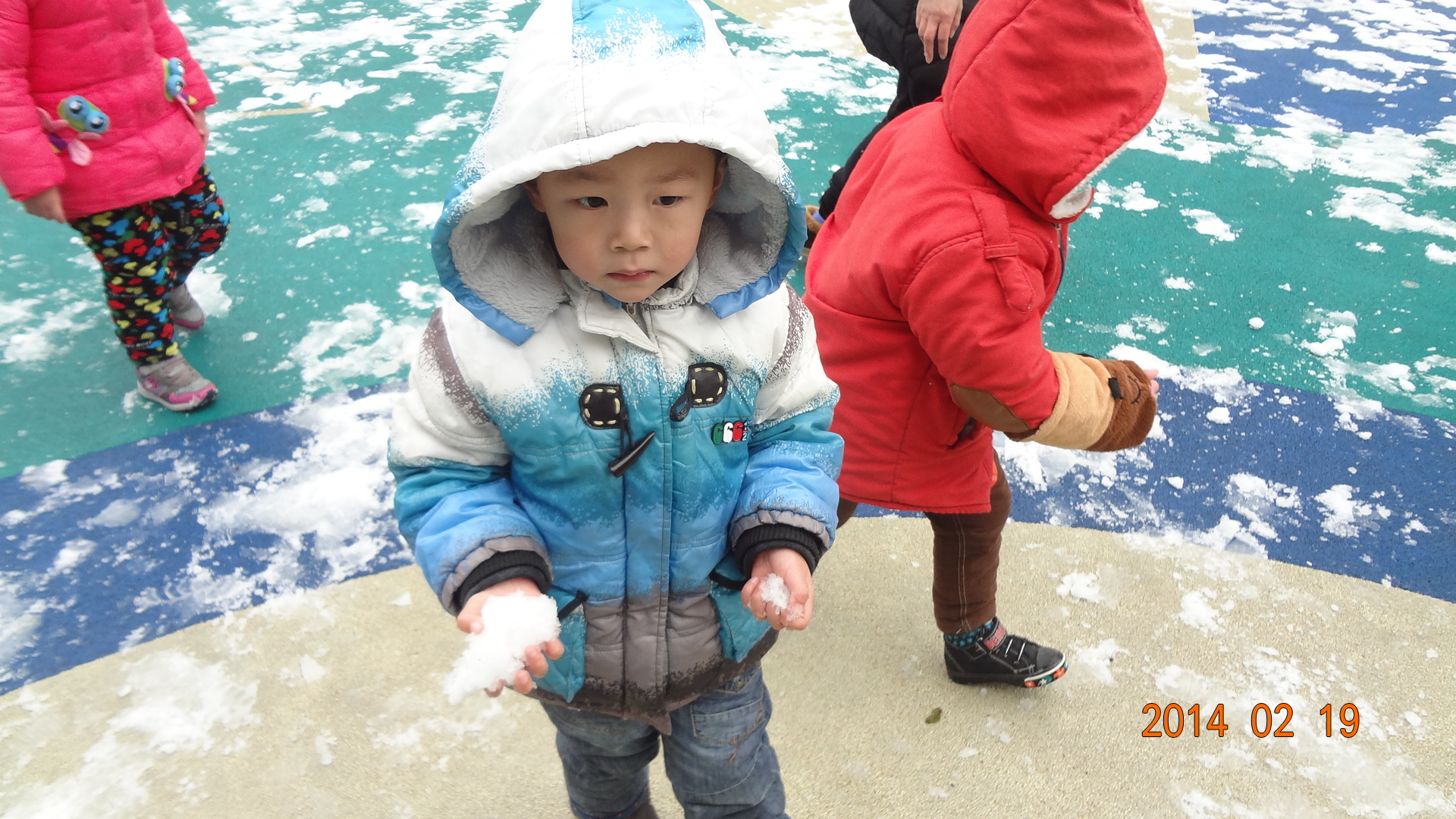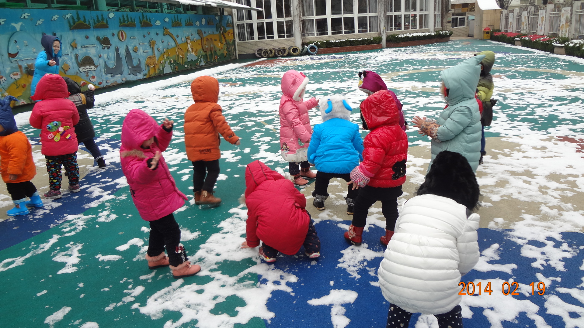 老师真的带我们一起玩雪咯!看,我是个勇敢的宝宝,我的小手不怕冷,我会做小雪球呢,你会吗?