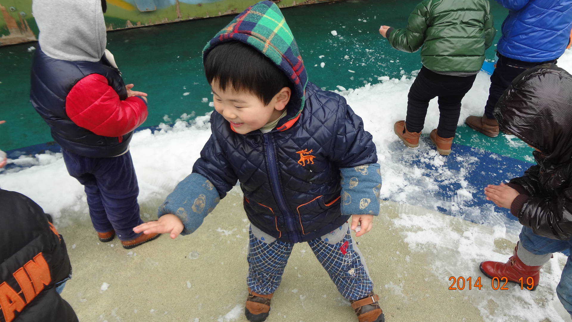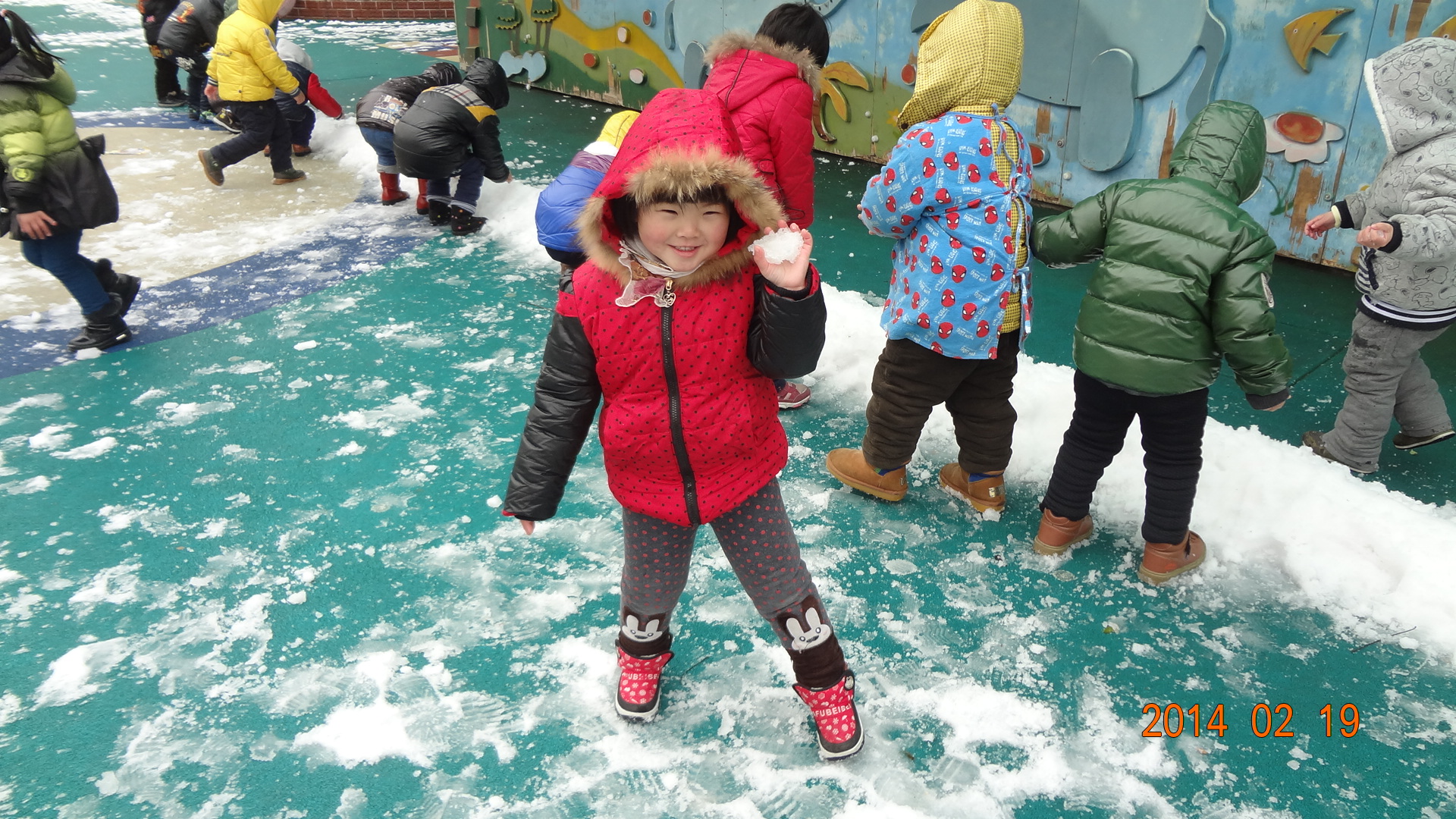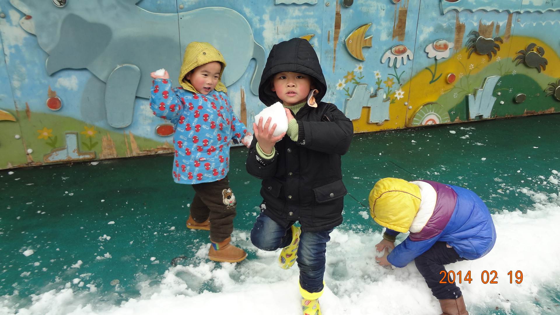 老师真的带我们一起玩雪咯!看,我是个勇敢的宝宝,我的小手不怕冷,我会做小雪球呢,你会吗?