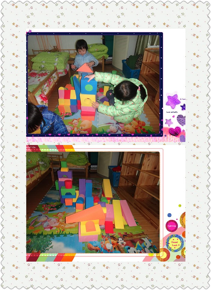 为了丰富幼儿的游戏内容,结合幼儿的年龄特点和游戏水平,小五班这学期增设了区域游戏“建筑乐园”,孩子们非常的感兴趣。建构区的打造,极大的调动了幼儿的想象力和创造力。