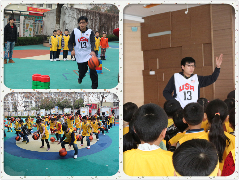 篮球运动伴我行 健康快乐迎青奥 ——翠屏山幼儿园幼儿篮球社成立啦 3月4日下午,翠屏山幼儿园操场上热闹非凡,近50名孩子身着统一的篮球衣,手执幼儿园专门配备的篮球,兴奋着叫着“打篮球喽”,单手拍球、运球传球这些看似枯燥的动作,孩子们却练得一丝不苟,俨如一个个“篮球小将”...原来该园的幼儿篮球运动社团正式开始啦。该园经过调查研究、精心组织和周密策划,结合本园实际和男教师自身特长,开设了幼儿篮球运动社团,旨在挖掘幼儿发展潜能,体验健康运动的快乐。 早在上学期,该社团的负责人李敏老师就已经在幼儿园内开展了有关幼儿篮球运动的意向调查,并向家长代表介绍了篮球社团成立的目的、意义以及活动实施计划。活动前李老师首先根据幼儿身体素质对孩子们进行了体能测评,并通过让孩子们观看精彩的篮球运动视频,帮助孩子们了解篮球魅力,调动运动欲望。活动中孩子们个个跃跃欲试,拿起篮球就忍不住去拍,听口令双手交换,接着360度利落转身继续拍球,虽然球技不是那么娴熟,但生龙活虎的样子还是带给了大家健康阳光的美好感受,成了该园一道亮丽的运动风景线。 后期篮球社团还将从简单拍球、花样拍球、运球投篮等方面进行系统的专业训练和练习,并计划通过学期末的幼儿花样篮球展示活动,真正促进幼儿运动发展。 该园幼儿篮球运动社团的成立真正兼顾了个别幼儿的个性爱好,满足了不同幼儿特别是男孩子个性发展的需求,同时也让男幼儿教师的创新能力和组织能力在幼儿园中得到了充分的发挥,让幼儿园焕发出无限活力。