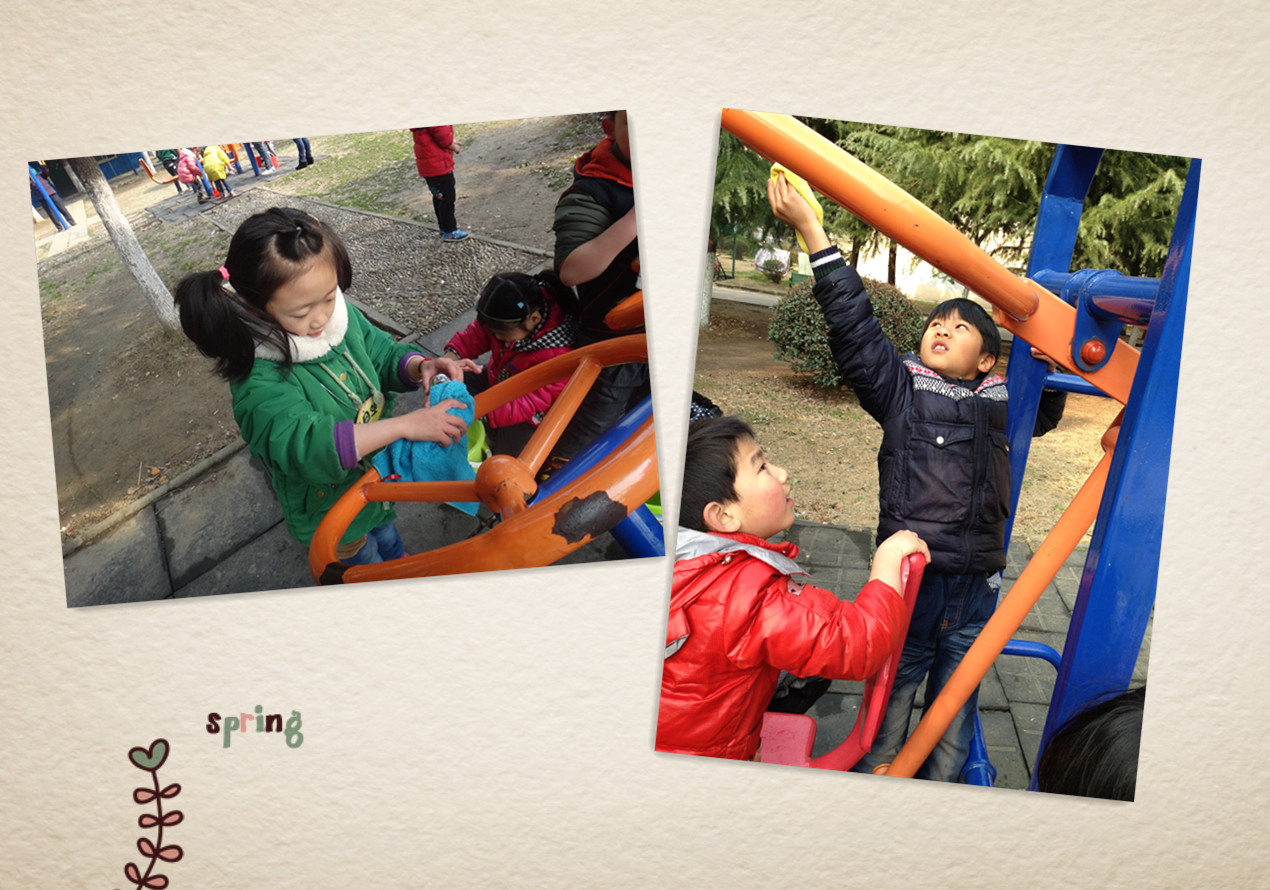 3月5日是雷锋日,我们迎来了学习雷锋的热潮!今天阳光明媚,我们拎着小水桶,带着抹布来到社区里的健身器械中心为来这里锻炼的人们服务,把这些器材擦的干干净净。在三月的春风里,我们卷起袖子唱着歌,你看我们多卖力!学习雷锋,从我做起,让雷锋叔叔的精神永存我们心中!