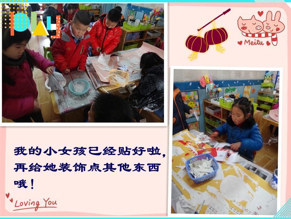 我已经把小女孩贴好了,我要给她装饰上漂亮的花纹哦!