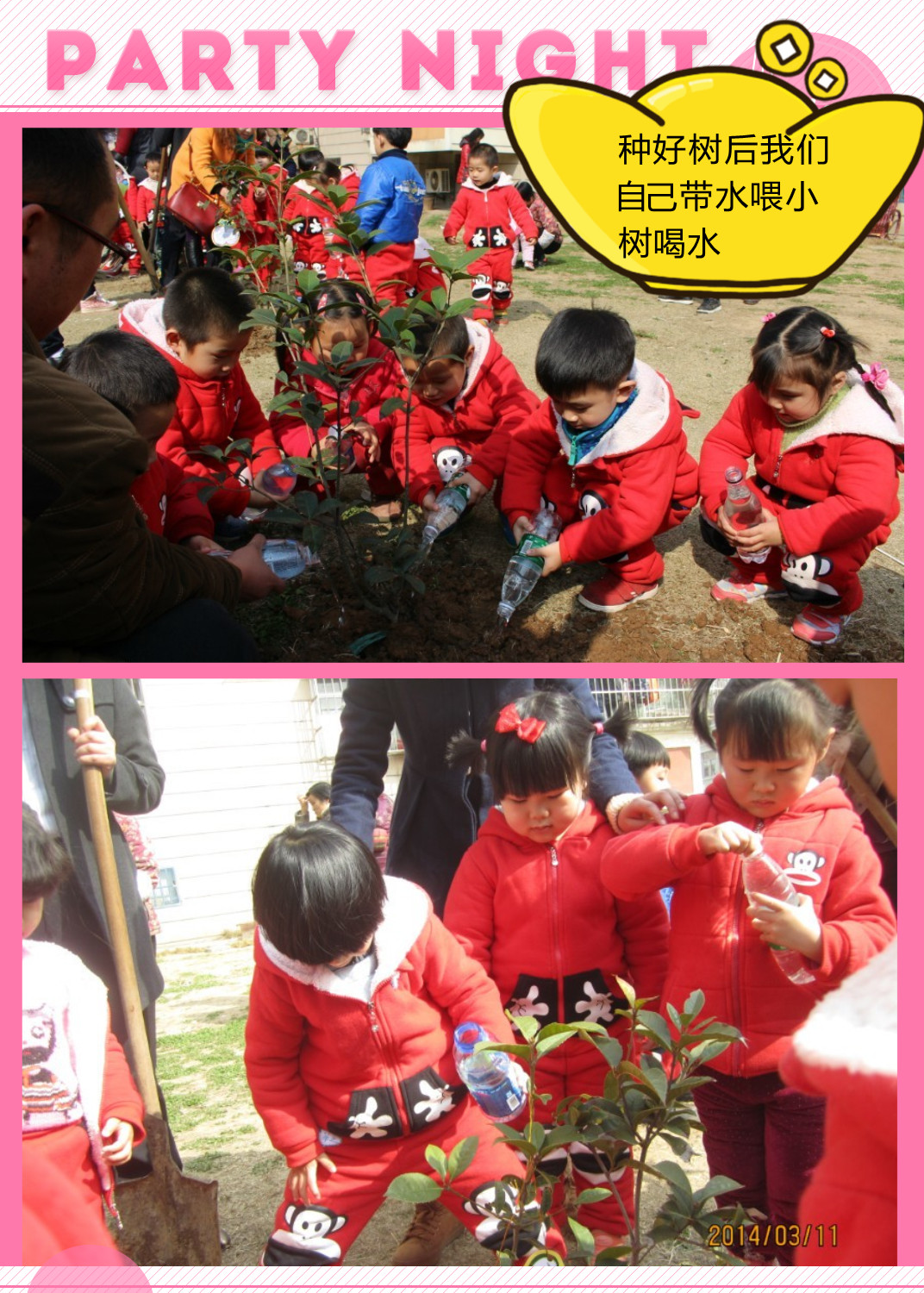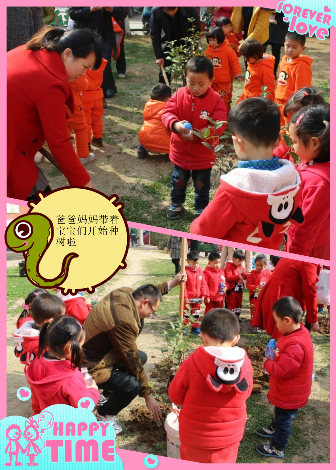——翠幼小六班植树活动报道 3月12日是一年一度的植树节,为了让孩子积极地参与植树造林、栽花种草活动,翠屏山幼儿园特别开展了植树活动。小六班的老师和宝宝以及13位家长志愿者积极参与了此次活动,家长和小朋友们亲手种上了一棵棵充满希望的小树苗。活动中孩子们兴奋极了,挖坑、填土、浇水。他们像一群快乐的小鸟,收获着种植的快乐。 通过本次活动,不仅让小朋友认识了植树节的意义,更学会关注环保绿化问题。让我们携起手来,播种绿色,放飞希望吧!