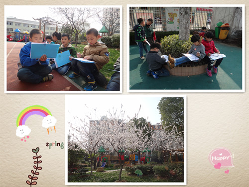 幼儿园里的春天真美,小草偷偷地从泥土里钻出来,光秃秃的树枝抽出了嫩芽;果园里杏树在阳光的照耀下染红了脸颊,广玉兰也羞羞答答的露出了粉色的小脸蛋,真是美丽极了!