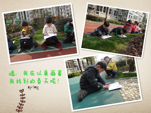 我们想把美好的春天留住,留在我们的眼睛里,留在我们的纸上,留在我们的记忆力里,永远留住吧!嘘,不要打扰了这美丽的春景吧,我要开始为她写生了!