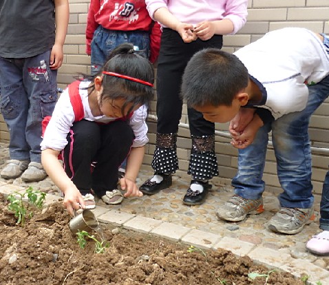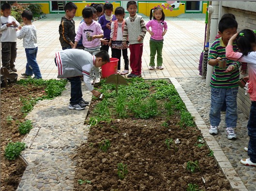 在幼儿园的北面,有一块菜地,其中的一角是属于我们大一班,我们决定种上美味的西红柿。在张老师的带领下,来到了菜地边。张老师已经把地翻好,我们只需挖坑、入苗、浇水就可以了。