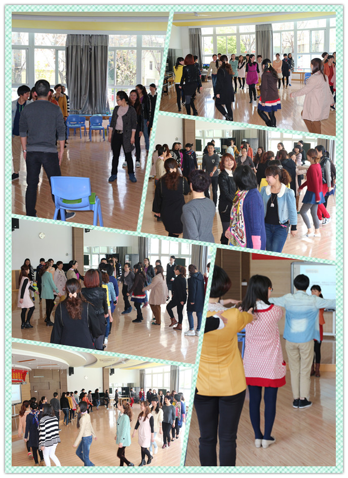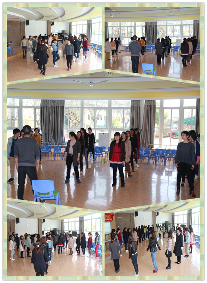 4月2日中午,全体教师齐聚多功能厅参加第二次“运动游戏”专题培训,活动开始前,教师们按班级分成6组,大、中、小班分别推荐一名教师,带领6组教师进行日常体育活动中的基本口令和队列练习,通过现场实际演练,教师们进行观摩和诊断,了解其中存在的一些小问题,最后由马老师进行讲解和示范总结。活动既活跃了气氛,也让教师们进一步明确了哪些是短口令,哪些是长口令以及队列变化的要求等等。