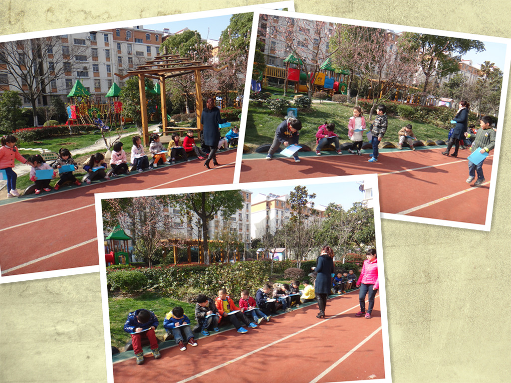 天气实在是太好啦,老师都忍不住把课堂搬到课外啦~