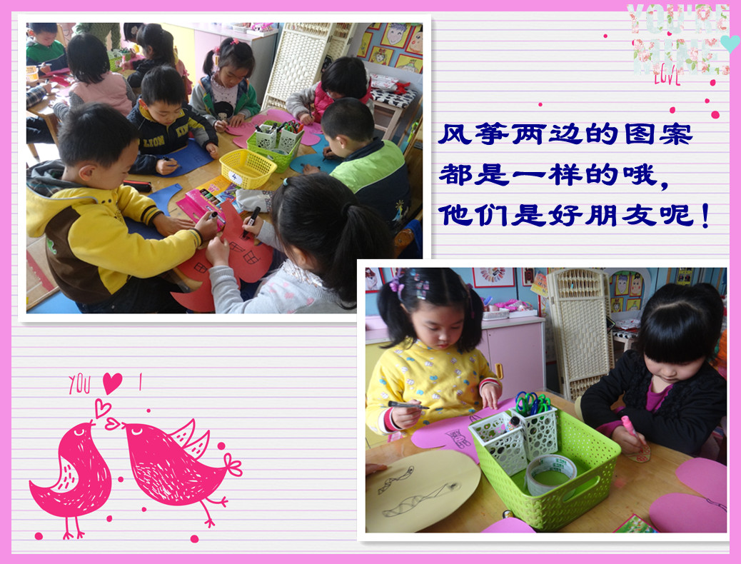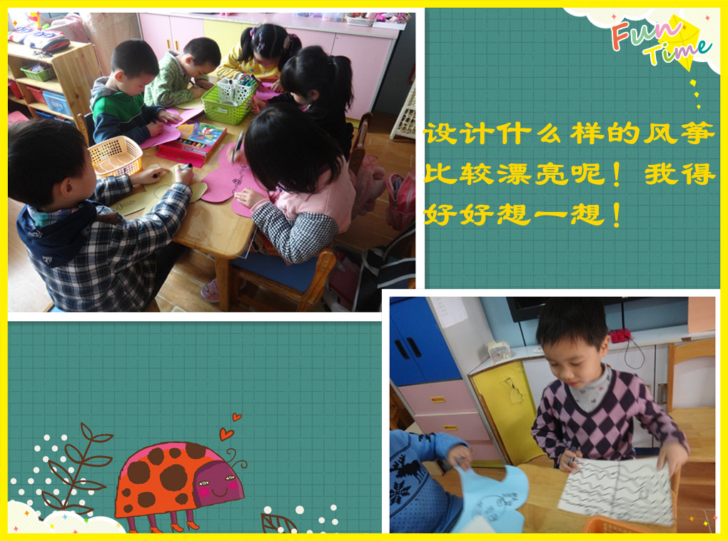 我们的风筝都不一样哦,老师夸奖我们的想法很棒呢!