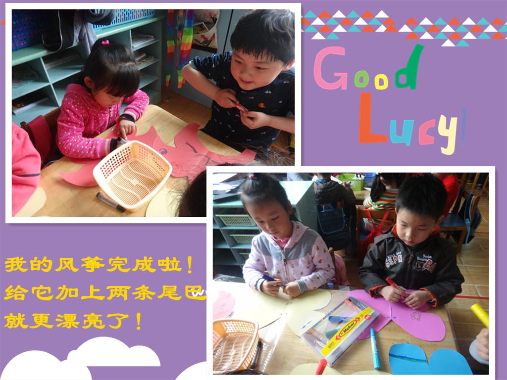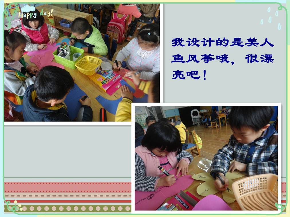 我给我的风筝装饰上漂亮的花边哦!