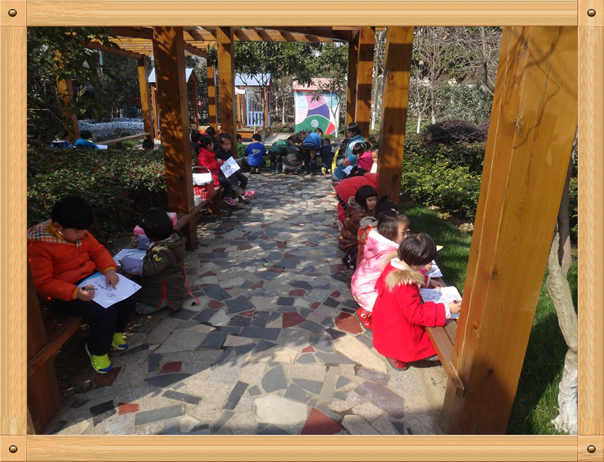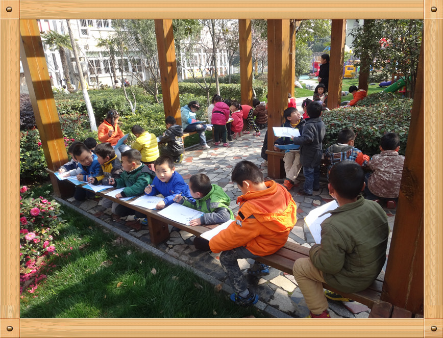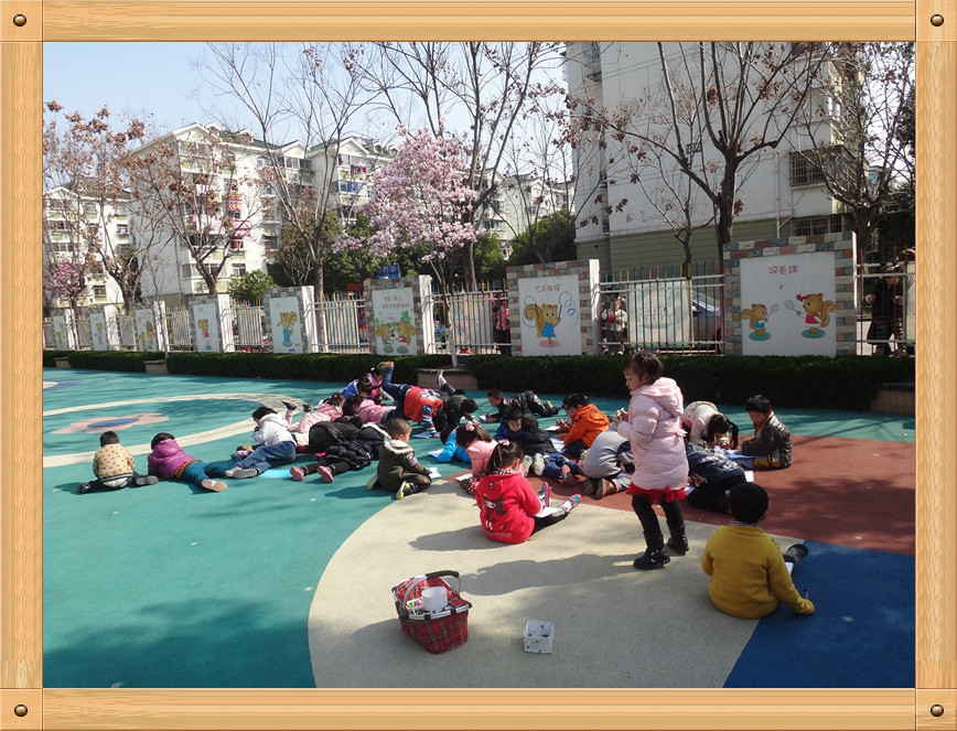 春天到了,我们的衣服穿得也越来越少了,小树,小花 也都换上了漂亮的衣服,所以我们决定出去写生了,看看我们的幼儿园是多么的漂亮啊,红的花,绿的草,高高的大树。瞧,我们画的多认真啊。爸爸妈妈快来找我在哪呢!