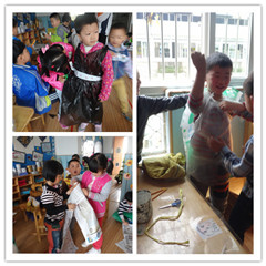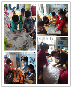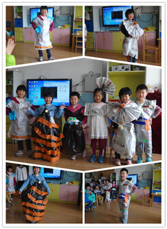为迎接青奥会的到来,大三班幼儿做起小小服装设计师,利用身边的废旧材料,设计与制作青奥会的表演服装。在大家的通力合作下,单调的米袋变成时尚的外套,简易的报纸变成华丽的裙子,普通的垃圾袋变成飘逸的晚礼服。通过此活动,不仅提升了幼儿动手能力,也增强了幼儿作为南京人的自豪感。