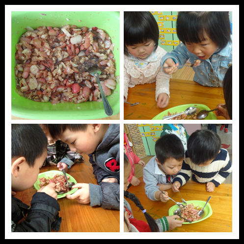 今天我们带了很多萝卜,没有种完的老师做给我们吃掉啦,酸酸甜甜的,可好吃了!
