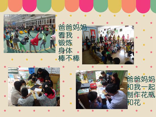 今天真开心,爸爸妈妈和我一起上幼儿园,陪我游戏,陪我上课,陪我做手工,真好!