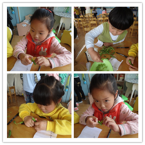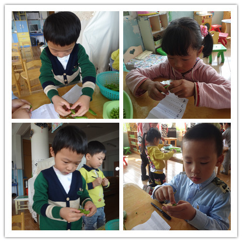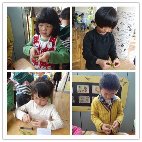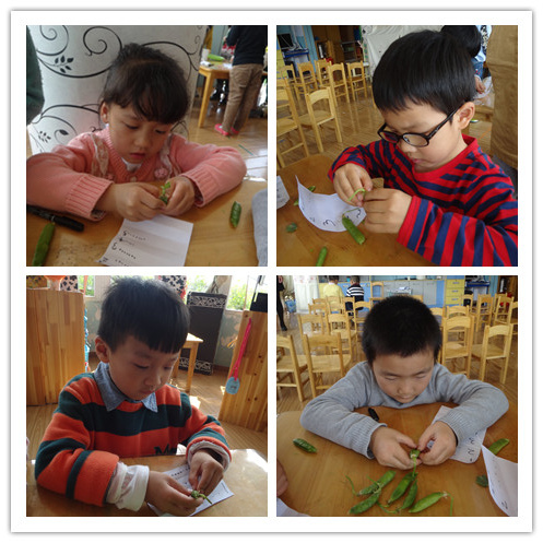 爸爸妈妈你们知道豌豆肚子里面有几个豆宝宝吗?今天我们上了一节剥豌豆的课呢,开始我们大家都在猜豌豆肚子里面有几个豆宝宝,可是我们都猜错了,原来啊,每个豌豆肚子里面的豆宝宝的数量都不一样呢。