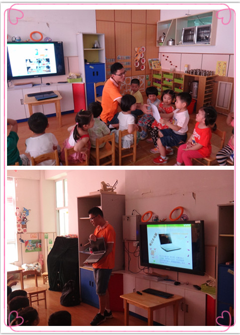 5月29日上午,翠屏山幼儿园小四班分外热闹,一位个子高高的叔叔正带着我们小四班的小朋友观看和学习信息化产品的知识!原来,这是小四班正在开展的“家长助教”活动,请来了麦兜爸爸来做老师,小朋友们好开心!