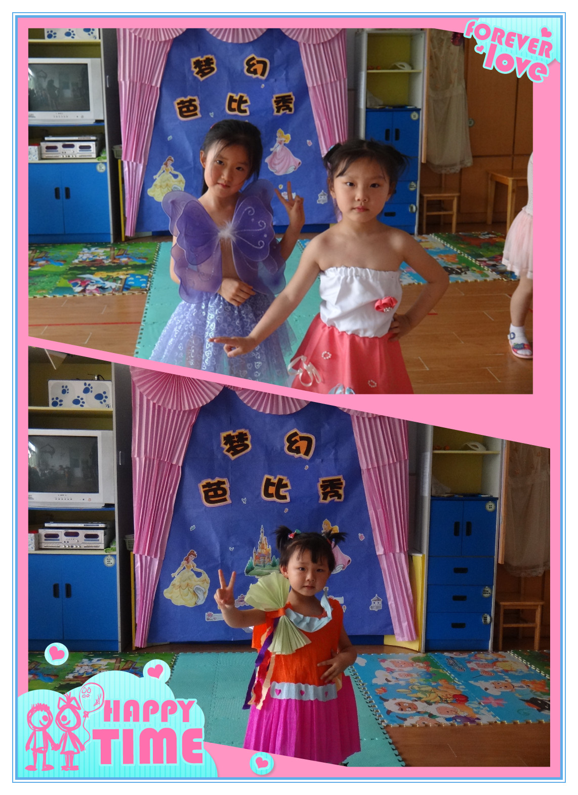 在六一儿童节来临之际,我们中四班开展了以“梦幻芭比”为主题的我型我秀庆祝活动。活动前期我和爸爸妈妈们一起商量我要扮演的角色,并且用废旧材料做出了美丽的环保衣服,有的扮演王子有的扮演公主,还有的用泡沫板做了盔甲和宝剑扮演将军,真是丰富多彩~~~