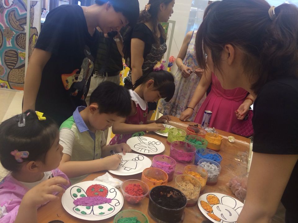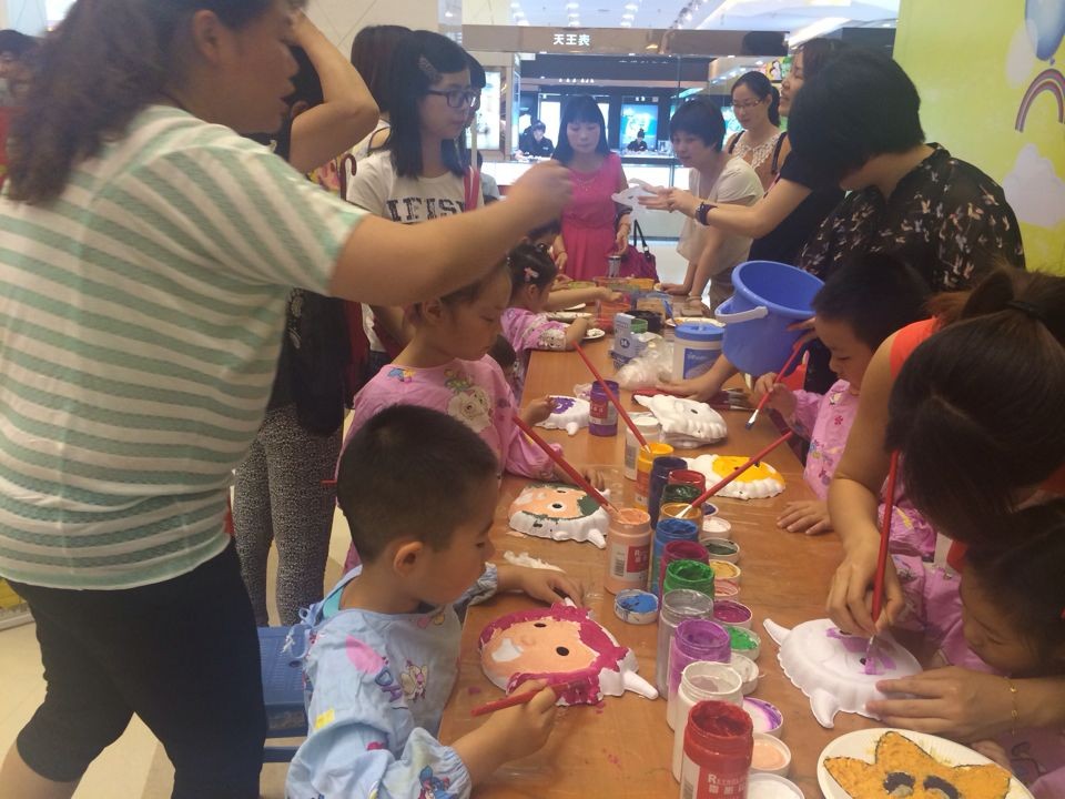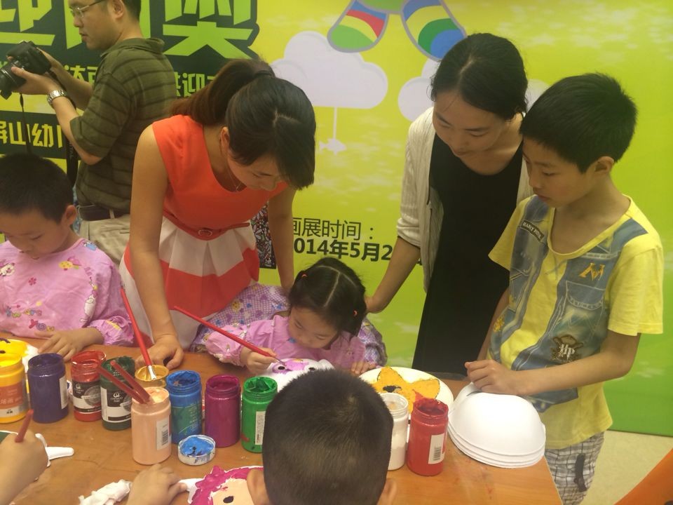 为迎接六一儿童节的到来,我园于万达百货一楼举办了第一届幼儿画展活动,以此为契机,拉开了翠幼第一届幼儿美术现场创作的序幕:5月31日上午10:00,翠幼的教师们在画展现场热情的接待来参加活动的小朋友们,有的孩子选择了纸浆画,有的孩子选择了卡通脸谱,现场气氛热烈,幼儿积极参与,家长兴奋好奇,教师们一对一指导,还有的家长询问纸浆的做法,教师们热心解答……。