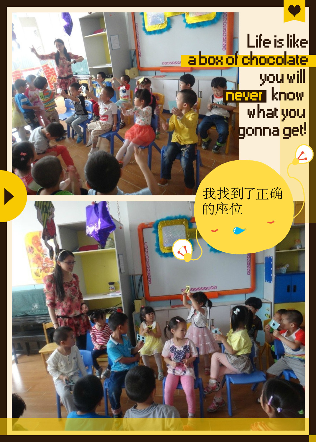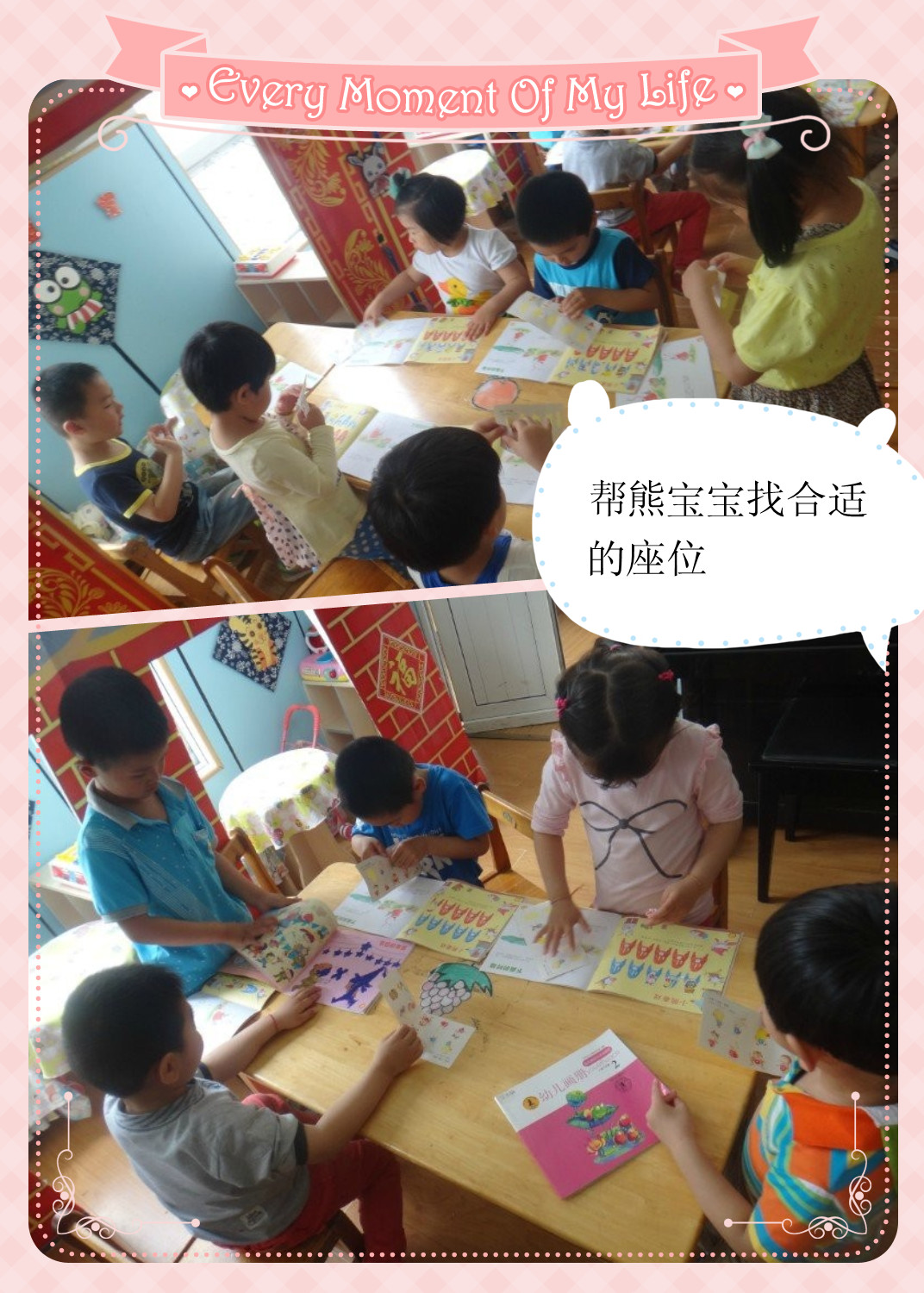 今天的数学活动中,教师为宝宝们营造了一个有趣的学习环境,利用最简单的小椅子做看电影的道具让幼儿学会根据点数找椅子。将教案中的“看戏”改成了“看电影”,因为对于现在的孩子而言,看电影比看戏更容易理解。我用六一儿童节到了,请小朋友看电影的情景导入活动,并出示电影票要求幼儿能找到和电影票颜色相应的位置就请谁看电影,孩子们为了能看到好看的电影,在活动中都能积极地参与。第一次坐对颜色区后,我又再次提出了一个要求,就是让幼儿根据电影票上的点子找位子,要求他们在自己的颜色区找到和自己电影票上的点子数相同的位置。大部分幼儿都能找到,有两个找错的孩子也在大家的帮助下找到了。找好位置后,我请孩子们和我一起来检查一下所有的小朋友有没有坐对位置,在小朋友们已经找对位置了以后,我说:“你们都找到自己的位置了,现在我们的电影要开始啦!”听了我的话,孩子们兴奋极了,个个坐的端端正正,认真地开始看了。