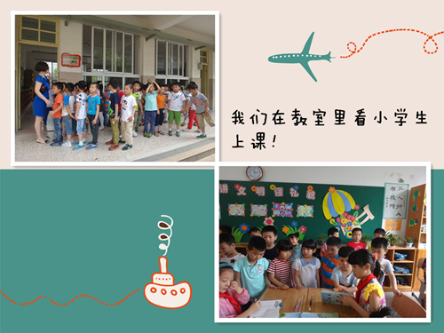 看完小学生做运动过后,我们跟随着老师来到了一年级(4)班,观看小学生上课。虽然时间有点长,我们站得有点累,但是我们依然很开心,觉得小学生真聪明,真棒呢!