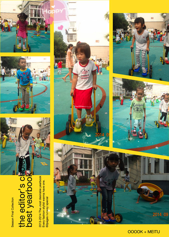 今天是开学的第二天,早上,老师给我们介绍了新游戏:踩小车、走平衡组合、转陀螺,还教我们怎么玩,我们玩得真高兴!