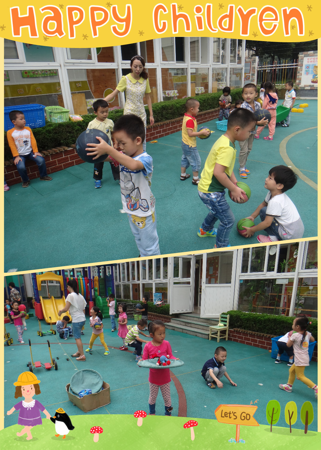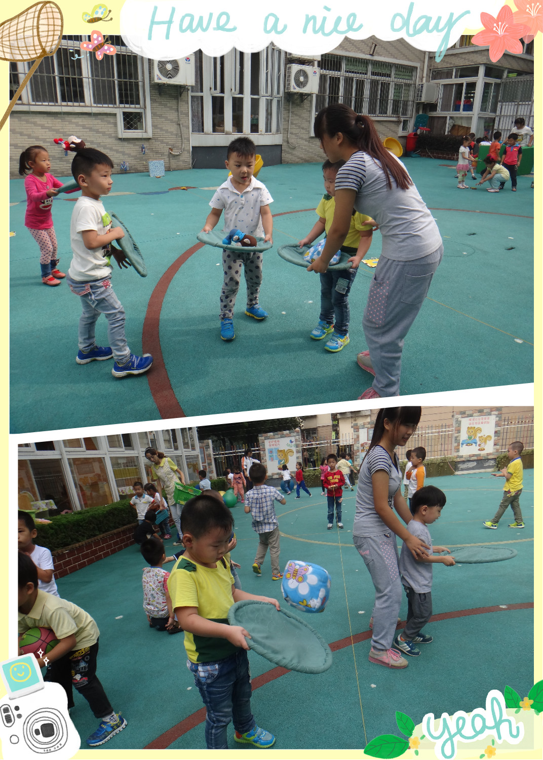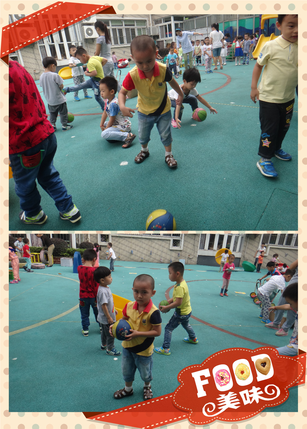 我会拍皮球啦,也会和小伙伴接抛球哟