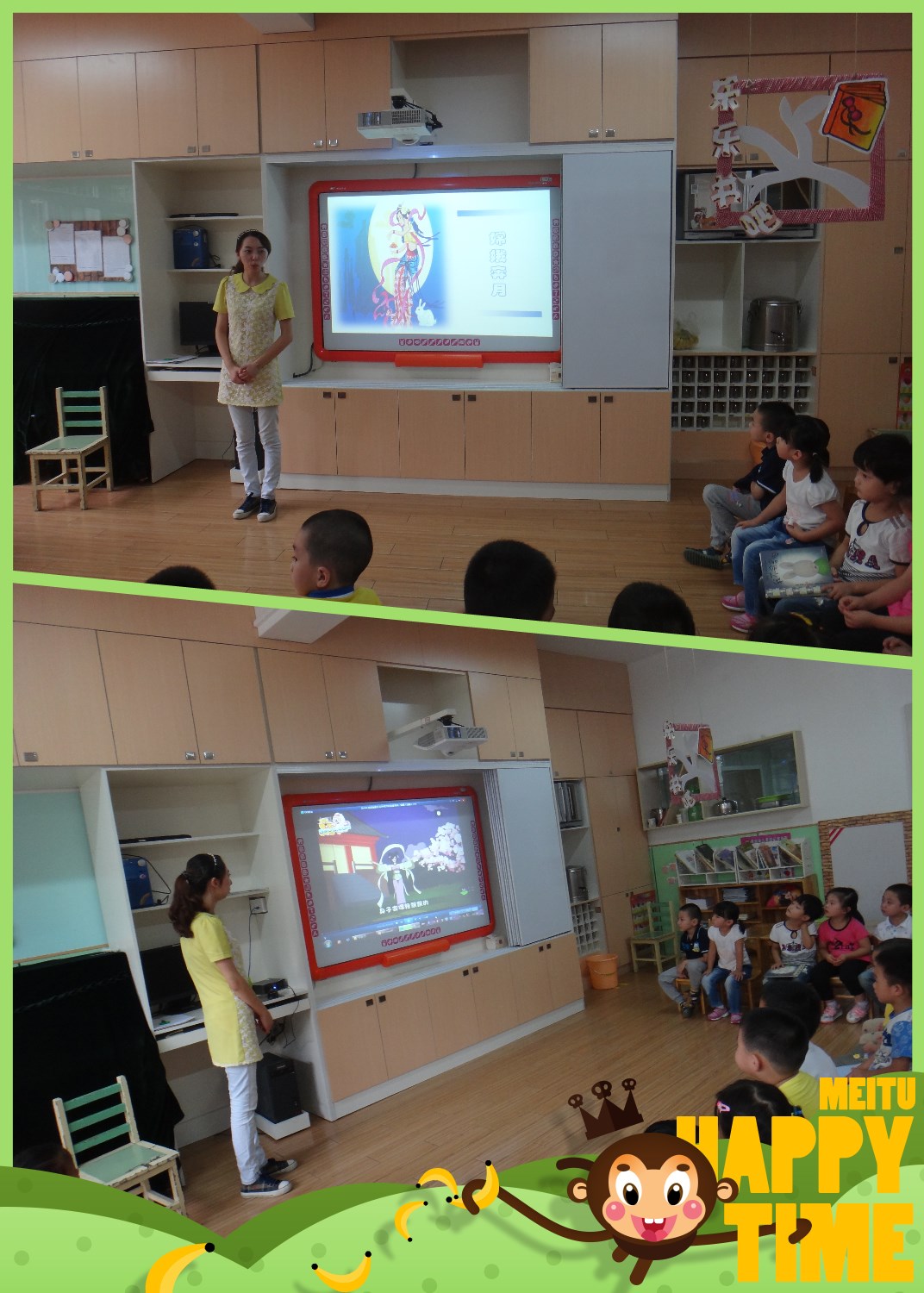 老师给我们讲述中秋节的来历哦!我们听得很认真!