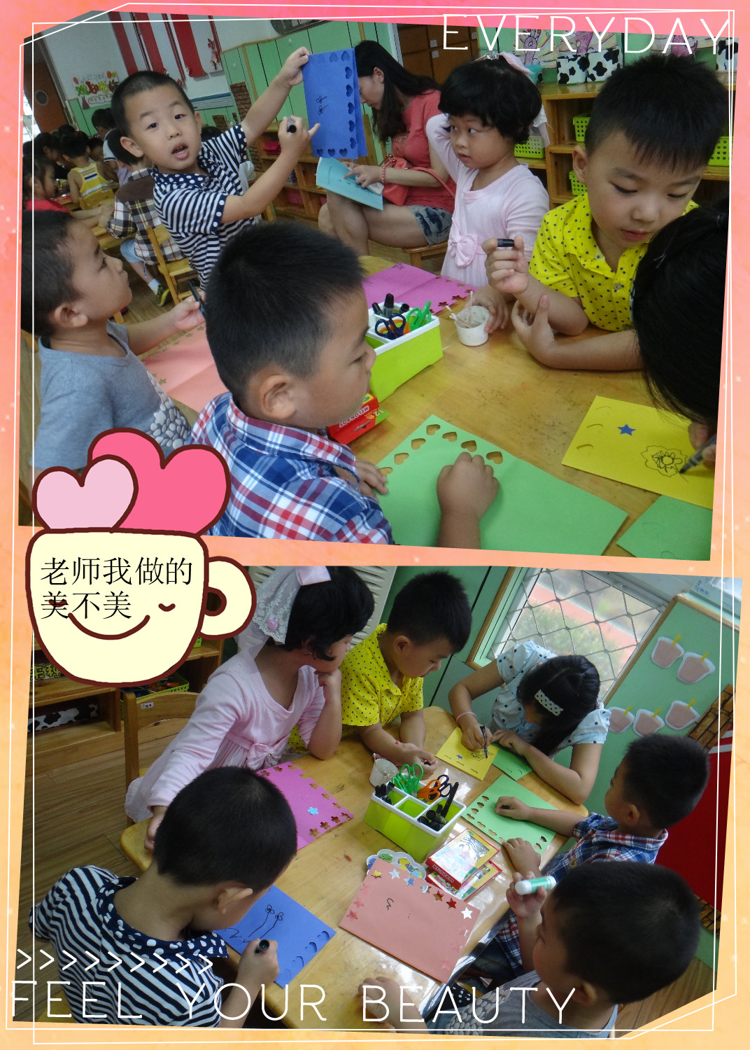 问候。今天我们班组织宝贝们亲手为老师们做节日贺卡,老师们在活动前准备了充足