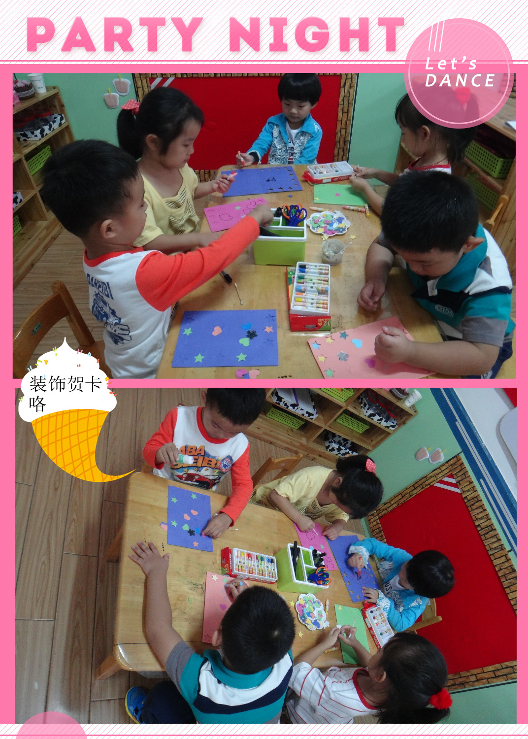 图片,在老师们的指导下宝贝们都做出了有自己绘画图案的精美贺卡!最后开展了贺
