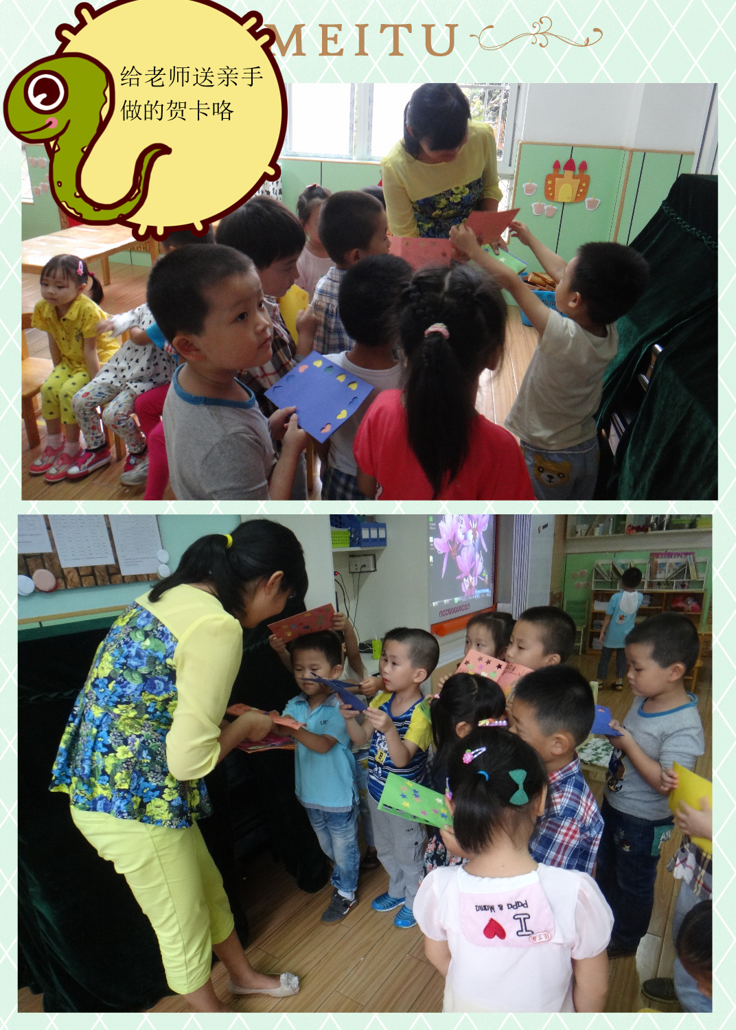 卡送老师的活动,宝贝们都把自己制作的贺卡送给了班上的老师们,给老师们问上节
