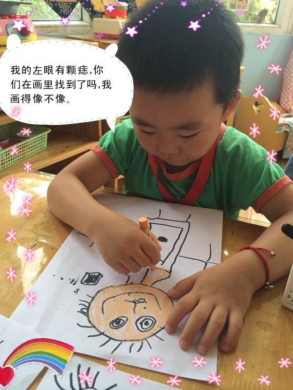 学本领啦,今天我们学得本领是画画自己!大家都很期待哦!瞧,这就是我们画的自己,是不是很美很有意思呢?
