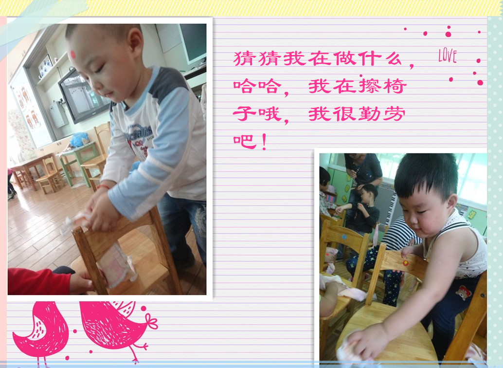 我今天的本领学得不错吧,小椅子被我擦得可亮了!
