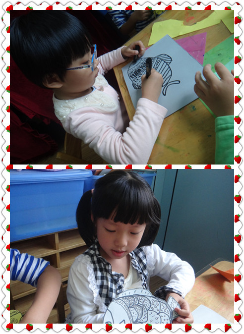 画完后还要把小鱼剪下来哦!剪得时候千万不能剪到小鱼哦!