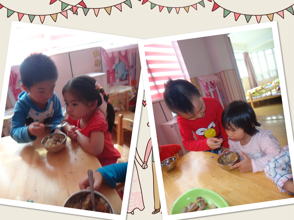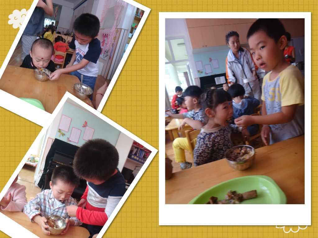 今天大班哥哥姐姐来给我们喂饭啦,他们好能干哦,好希望快快长大,像大哥哥大姐姐一样关心小弟弟小妹妹们。