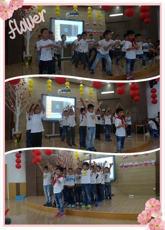 今天,我们迈着整齐的步伐,唱着嘹亮的爱国歌曲,庆祝即将来临的祖国妈妈65周岁的生日。小伙伴们每个人的脸上都洋溢着喜悦的笑容。