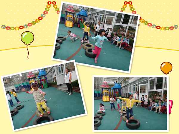 今天的体育活动中,我们和沙包做了好玩的游戏,在头顶沙包走路中,我们感受到了身体平衡的重要性。走弯弯曲曲的小路时,我们的孩子可小心了,两臂伸平,眼睛向前看,稳稳的从起点走到了终点。走轮胎时,就有点难度咯,时不时都有沙包往下掉,不过我们的孩子都不怕哦,个个都想去挑战,看看他们的精彩瞬间吧!
