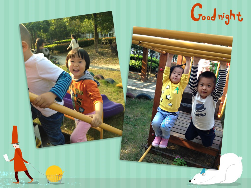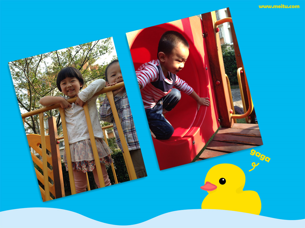 开学已经一个多月啦!我们已经渐渐适应幼儿园的生活。你看,幼儿园的大滑梯多有趣!我们不哭、不闹,笑得真开心!