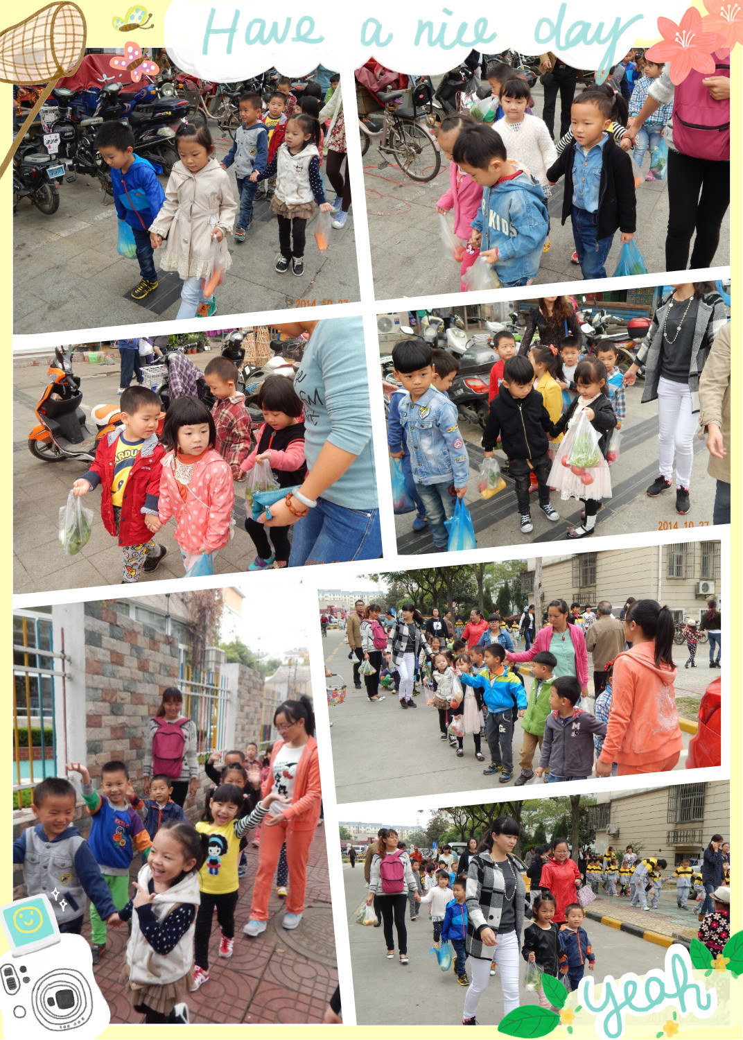 我们的表现很不错吧?现在我们已经买好自己想要的菜了,该回去啦!我们每个小朋友都是满载而归哦!你看~~