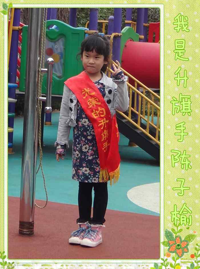 第九周升旗仪式 明媚的阳光中,我们迎来了第九周的升旗仪式。 我是今天的升旗手,来自大一班,我叫陈子瑜。 今天是大五班的樱桃老师和刘苗苗同学国旗下讲话,她们告诉我们“电”很有用但也很危险,我们要时刻注意,不能拿插座当玩具玩,不能用湿手碰开关、插座,出门要随手关灯观点是,防止漏电,节约用电。 我们的每周之星是那么的神采奕奕,为自己能成为每周之星感到自豪。 |