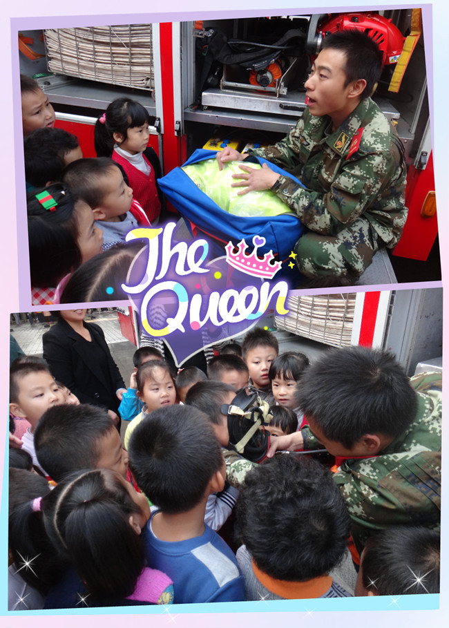 消防叔叔给我们介绍了他们的装备,有的小朋友还有幸的体验了一把,好刺激好有趣!