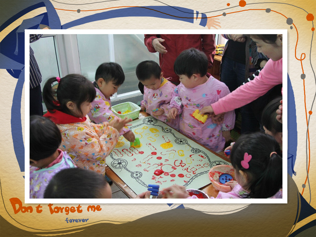 今天王老师较我们印五彩圈,我印出了漂亮的鸭子图案!