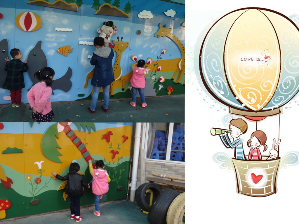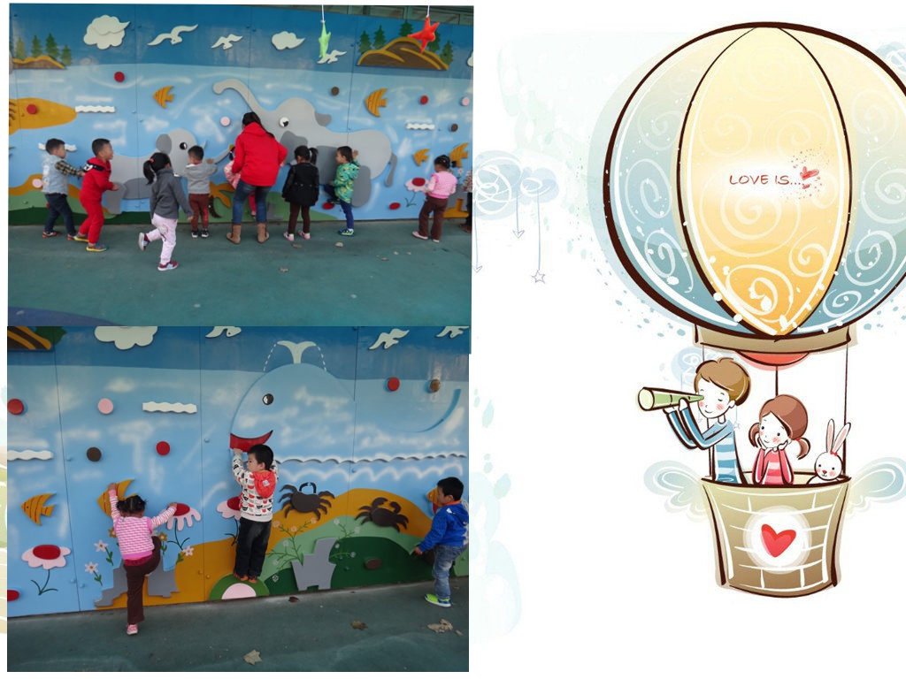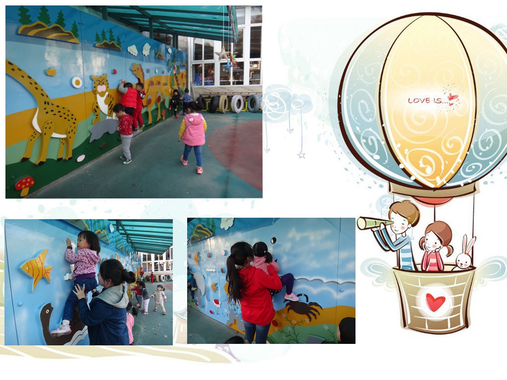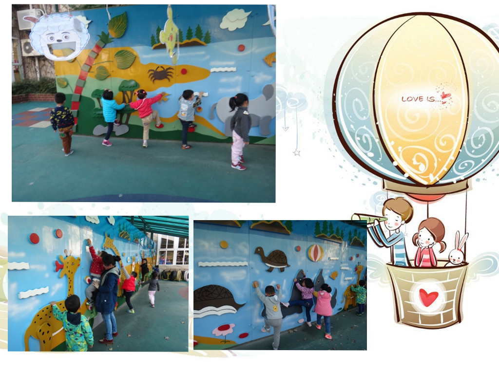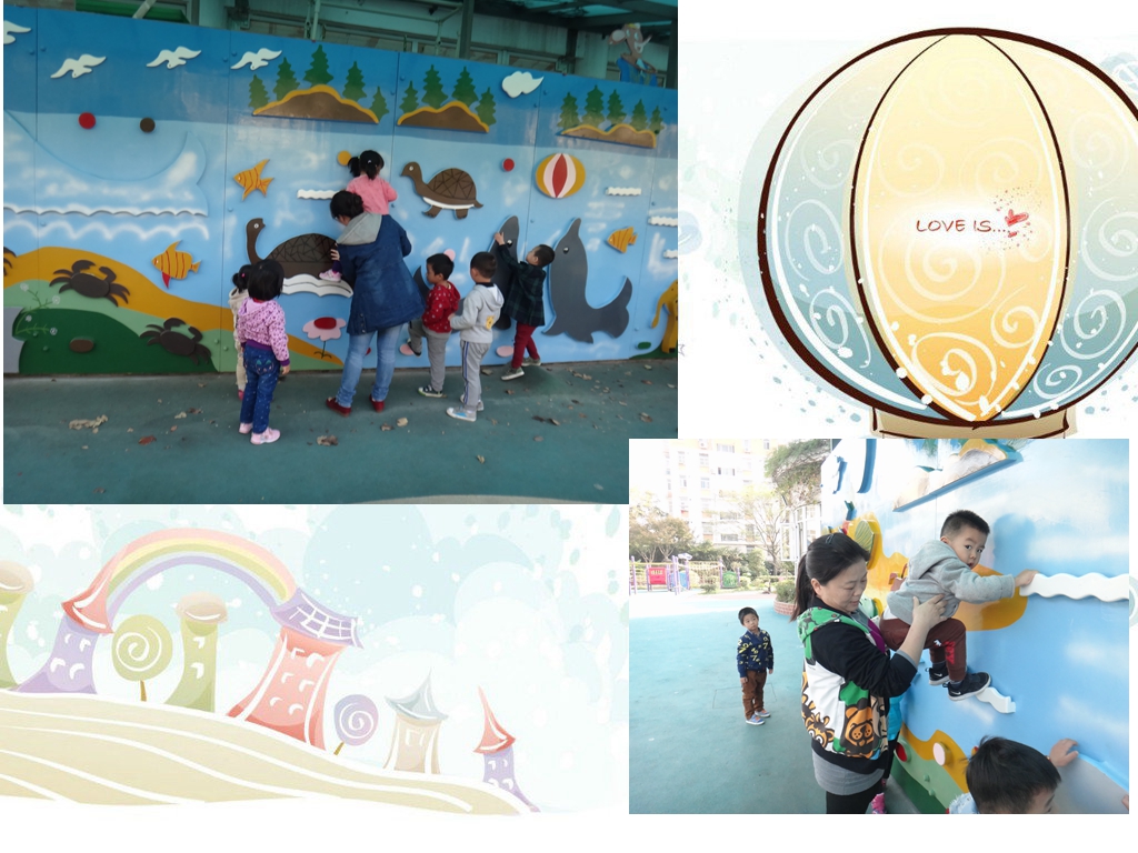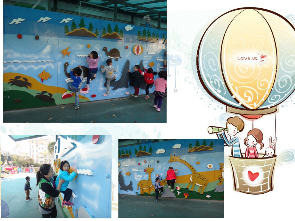 今天我们玩了我们期待已久的攀岩墙,真开心!攀岩墙真漂亮呀!有长长脖子的长颈鹿,还有可爱的大象、小乌龟....粑粑麻麻你们想看吗?