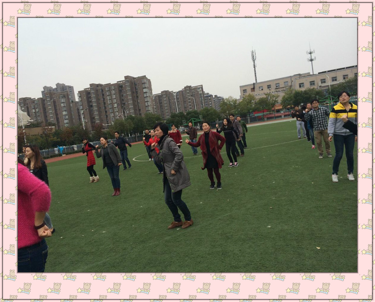 在运动会来临之际,不仅小孩子的热情被点燃,家长们也积极的参与进来。他们在劳碌了一天之后还辛苦的学习啦啦操。在忙碌的背后只是想让自己的宝贝在运动会那天看到爸妈最佳的状态!